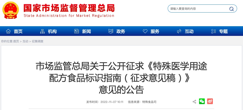2022年11月7日,國家市場監(jiān)督管理總局發(fā)布《特殊醫(yī)學(xué)用途配方食品標(biāo)識指南(征求意見稿)》(下文簡稱“指南”),征求意見截止日期為2022年11月25日。此次指南公布了特醫(yī)食品小藍(lán)花標(biāo)志樣式,規(guī)定特醫(yī)食品最小銷售包裝應(yīng)標(biāo)注特醫(yī)食品專屬標(biāo)志。