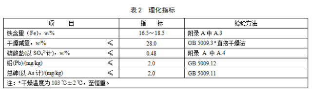 理化指標應(yīng)符合表2的規(guī)定。