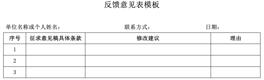 有關(guān)單位和個人可以在2019年2月28日之前,通過信函、電子郵件等方式提出意見或建議。反饋意見模板附后(附件2)。