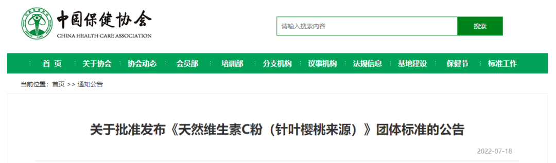 根據(jù)《中國(guó)保健協(xié)會(huì)團(tuán)體標(biāo)準(zhǔn)管理辦法(試行)》相關(guān)規(guī)定,《天然維生素C粉(針葉櫻桃來(lái)源)》團(tuán)體標(biāo)準(zhǔn)經(jīng)立項(xiàng)、起草、征求意見(jiàn)、審查等標(biāo)準(zhǔn)制訂程序,并通過(guò)中國(guó)保健協(xié)會(huì)批準(zhǔn),現(xiàn)予以發(fā)布。