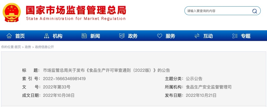 食品生產(chǎn)許可審查通則(2022版)