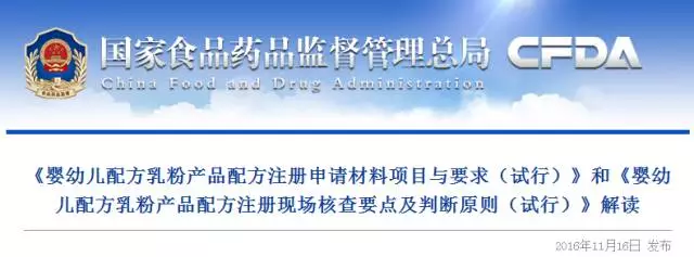 根據(jù)《中華人民共和國食品安全法》、《嬰幼兒配方乳粉產(chǎn)品配方注冊(cè)管理辦法》等法律法規(guī),食品藥品監(jiān)管總局組織起草了《申請(qǐng)材料項(xiàng)目與要求》和《現(xiàn)場(chǎng)核查要點(diǎn)及判斷原則》,于2016年8月9日至9月10日公開征求社會(huì)意見,經(jīng)反復(fù)討論修改完善后,于10月29日發(fā)布。