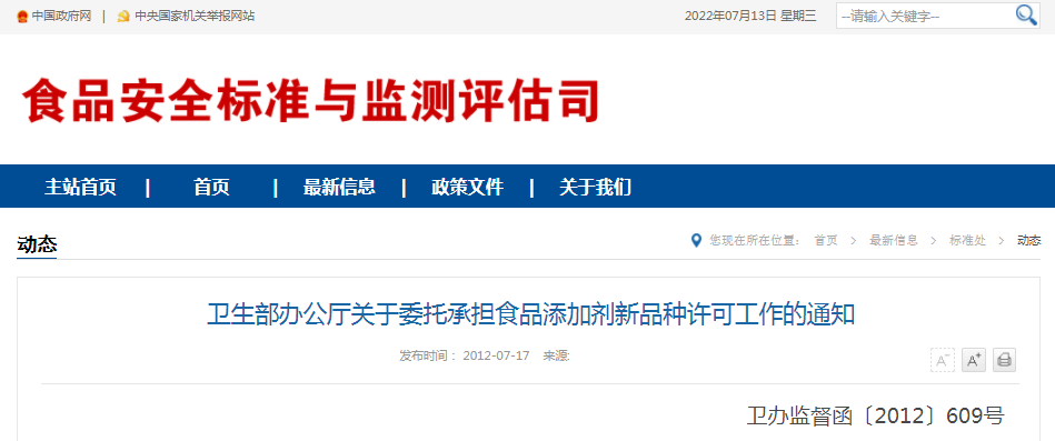 二、委托國(guó)家食品安全風(fēng)險(xiǎn)評(píng)估中心承擔(dān)食品添加劑新品種行政許可的受理、組織技術(shù)評(píng)審、征求意見(jiàn)、起草批準(zhǔn)文件等工作。